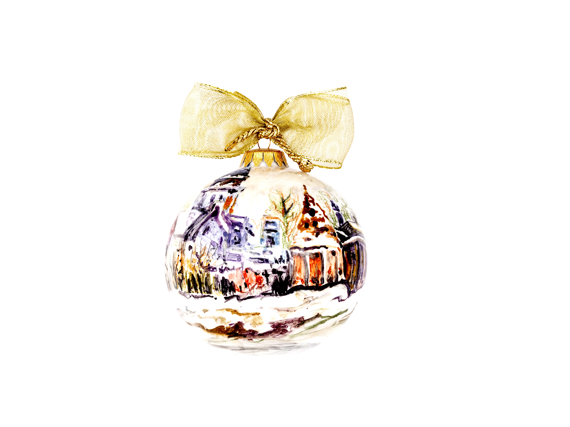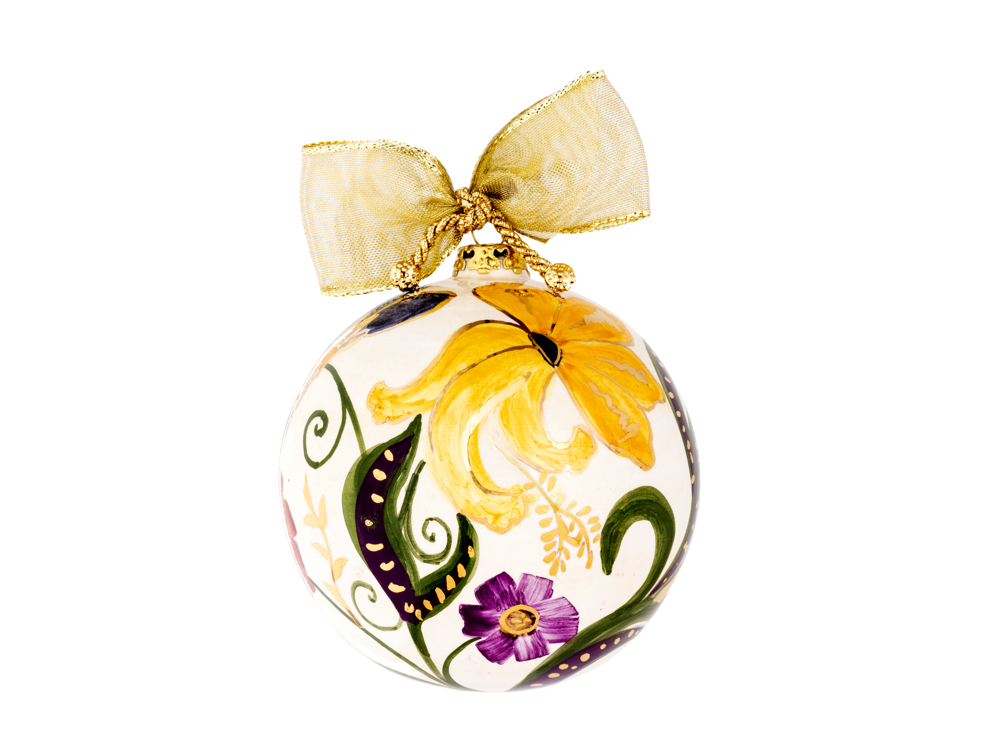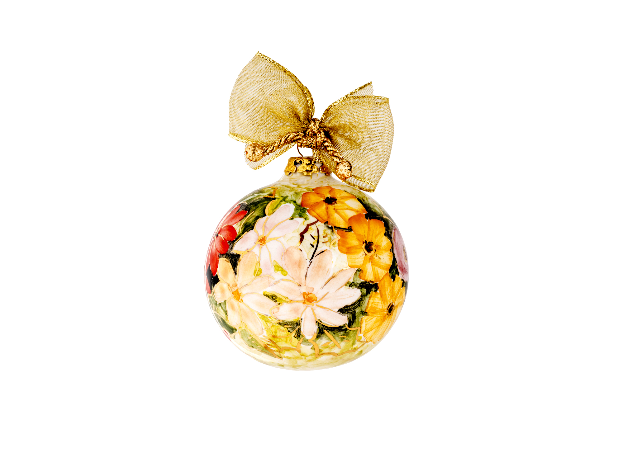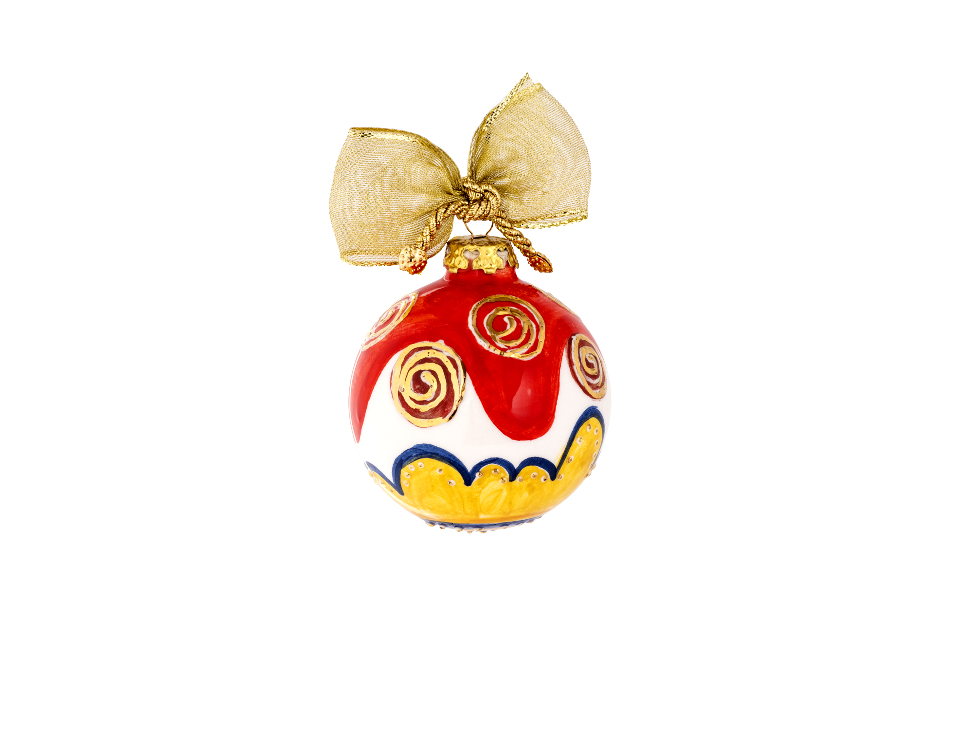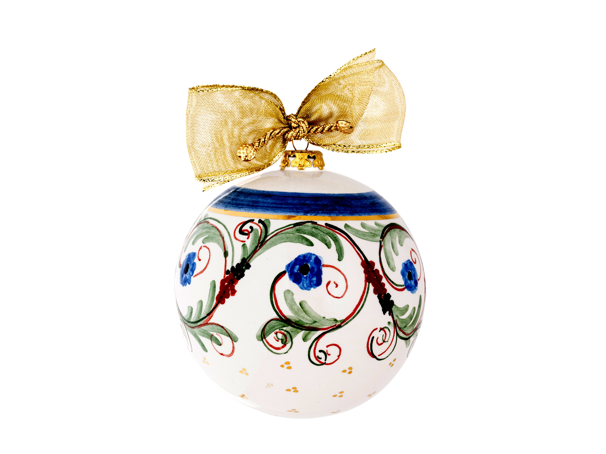 Ogni pallina è un’opera unica, interamente realizzata a mano secondo la tecnica del decoro su ceramica con interventi in oro zecchino.